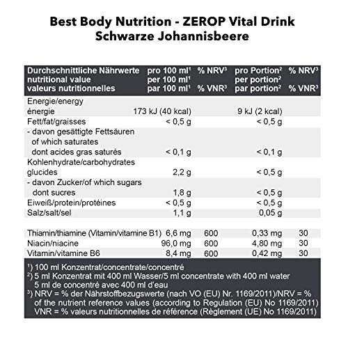 Met de Vital Drink kan in enkele seconden een koolhydraatreduceerde, suikervrije drank worden geproduceerd. In vergelijking met conventionele drankconcentraten heeft hij een gemiddeld 98 procent lager koolhydraatgehalte. Voor de bijzondere fruitige frisse smaakervaring zorgt het meegeleverde vruchtensap. Naast het vruchtensap bevat de Vital Drink de vitaminen B1, B6 en niacine. Vitaminen zijn essentiële voedingsstoffen. Deze kan het lichaam zelf niet maken, ze moeten het via voedsel of supplementen ter beschikking worden gesteld. De aanwezige vitaminen B1, B6 en niacine dragen onder andere bij aan een normale werking van het zenuwstelsel en aan een normale energiemetabolisme. Een goed functionerende energiestofwisseling is belangrijk voor de energiewinning, wat op zijn beurt van groot belang is voor het behoud van de basisfuncties in het lichaam. Daarnaast leveren vitamine B6 en niacine een positieve bijdrage aan de vermindering van vermoeidheid en vermoeidheid. Geschikt voor bereiding in bruiswater! Het concentraat is een ideale smaaktoevoeging voor water. Zo kunnen met de Vital Drink lekkere vruchtensappen heel eenvoudig en snel zelf worden gemaakt. Het concentraat is ook geschikt voor gebruik in apparaten die water met CO2 verplaatsen. Zo valt het vervelende slepen van drankjes weg. Voor een portie wordt 5 ml (= 1 x doseerpomp) Vital Drink met 400 ml water gemengd. De Vital Drink van Best Body Nutrition is bijzonder geschikt voor training of tussendoor om aan de vochtbehoefte te voldoen. Hij is verkrijgbaar in vele verschillende, lekkere smaken.