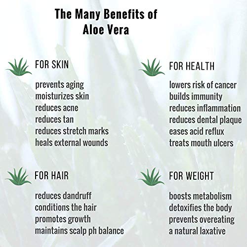 ● Fabrieksgarantie: 100% geld-terug-garantie, geen vragen gesteld en geen retourzending nodig. Aloë Vera, vaak de wonderplant van de natuur genoemd, wordt al duizenden jaren gebruikt om de huid te genezen en te verzachten. Aloë Vera staat bekend om zijn antibacteriële, schimmelwerende en ontstekingsremmende eigenschappen en heeft een breed scala aan toepassingen.