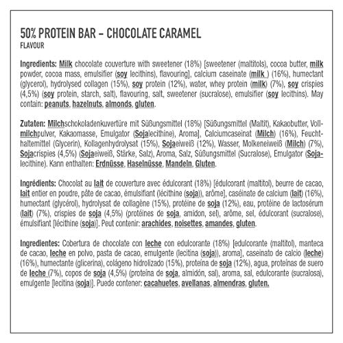Productbeschrijving Your Better Snack: Maak elke dag je dag. Met veel beweging en een gevarieerde, gezonde voeding. Met veel plezier en weinig suiker. De 50% eiwitsnack – met het hoogste eiwitgehalte onder de Premier Protein repen – heeft niet alleen een aangenaam losse consistentie, maar ook veel knapperige crispies. Ingrediënten: melkchocoladekuverdeuren met zoetmiddel (18%) [zoetmiddel (maltit), cacaoboter, volledig melkpoeder, cacaomassa, emulgator (sojalecithine), aroma], calciumcaseïne (melk) (16%), vochtinbrengend middel (glycerine), collageenhydrolysaat (15%), sojaeiwit (12%), water, weiproteïne (melk) (7%), sojacrispies (4,5%) (soja-eiwit, zetmeel, zout), aroma, zout, zoetstoffen (sucralose), emulgator (sojalecithine). Kan omvatten: aarten, hazelnoten, melandelen, gluten. Alle productbeschrijvingen