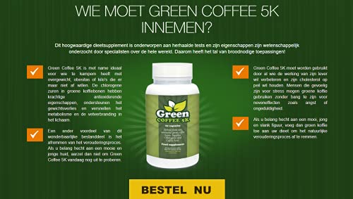 Green Coffee 5K (3x) Afgeleid van rauwe, ongebrande, groene koffiebonen, levert chlorogeen- en cafeïnezuur…