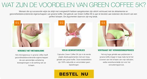 Green Coffee 5K is een voedingssupplement met extract van groene koffiebonen in een dosis die overeenkomt met maar liefst 5000 mg verse bonen in één capsule. Dit is een product voor mensen die hun gewicht op een natuurlijke manier onder controle willen houden en daarbij gebruik willen maken van de mogelijkheden van groene koffie. Een ingrediënt dat wordt gewaardeerd om zijn antioxidanten- en gewichtsverliesondersteuningspotentieel. Door het brandproces weg te laten, zijn groene koffiebonen veel rijker aan actieve ingrediënten dan hun bruine tegenhangers. Het chloragene zuur dat erin zit, wordt toegeschreven aan eigenschappen die de suikeropname verminderen door de afscheiding van glucose na een maaltijd te vertragen. Daarentegen wordt het koffiezuur in groene koffiebonen beschouwd als een zeer sterke antioxidant die kan beschermen tegen vroegtijdige celveroudering.