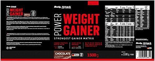 Specification: Body Attack Power Weight Gainer, Chocolade, 1.5 kg, 100% massabouw, koolhydraat eiwitpoeder om spieren op te bouwen met…