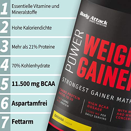 Body Attack Power Weight Gainer, Chocolade, 1.5 kg, 100% massabouw, koolhydraat eiwitpoeder om spieren op te bouwen met…