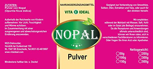 Specification: VITAIDEAL ® Nopal Poeder 100 g (viscactus, Opuntia ficus indica) + maatlepel van NEZ-Diskounter