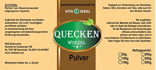 Specification: VITAIDEAL ® Queckenwortel Poeder 300 g (Agropyron repens) + maatlepel van NEZ-Diskounter