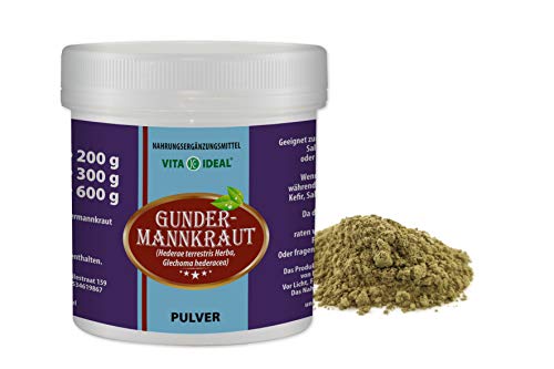 100 g poeder gemaakt van Gundermann-kruid (Hederae terrestris Herba, Glechoma hederacea), 100% natuurlijk (veganistisch), zonder toevoegingen, zonder vulstoffen, niet chemisch of kunstmatig gestandaardiseerd, lactosevrij, fructosevrij, glutenvrij. incl. maatlepel in de doos. Gevuld in Nederland.