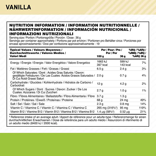 Specification: Optimum Nutrition Gold Standard 100% Plantaardig Eiwit, Veganistisch Poeder met Hoog Eiwitgehalte, Vanille, 19 Porties…