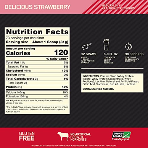 Specification: Optimum Nutrition 100% Whey Gold Standard, Delicious Strawberry, 5lbs