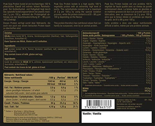 Specification: Peak Performance Soja Protein Isolat, 750 g Beutel (Vanilla)