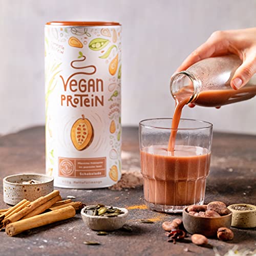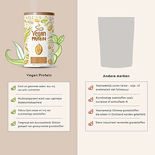 Vegan Protein – Chocolade – Plantaardig proteinen van gekiemde rijst, erwten, lijnzaad, amaranth, zonnebloempitten…
