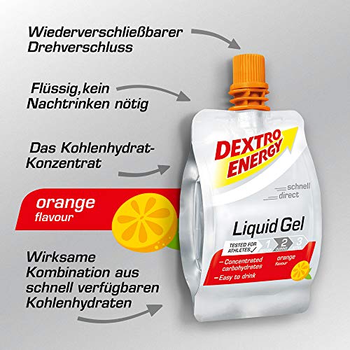 VERFRISSENDE SMAAK– 12 x 60 ml Dextro Energy Liquid Gel koolhydraatconcentraat met sprankelende sinaasappelsmaak is veganistisch, glutenvrij en lactosevrij