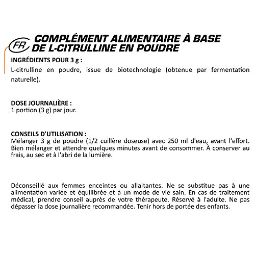 Per daily dose: 3 g of L-citrulline powder, from biotech (obtained by natural fermentation).