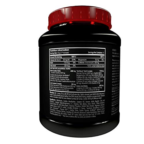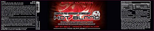 Als je koortsig zoekt naar een hele goede pre-workout! Zoek je al een tijd naar een pre-workout supplement dat je kan ondersteunen om je prestaties te verbeteren? Zodat opeenvolgende sets van kortdurende, hoge intensiteitsoefeningen bij krachttraining en je interval cardio makkelijker worden? Stopt dan met zoeken en koop Hot Blood 3.0 van Scitec. Wanneer bezig bent met trainen of een wedstrijd en je een bepaalde intensiteit bereikt, warmt je lichaam op zodat je efficiënter kunt werken. Hot Blood 3.0 van Scitec is een complexe pre-workout formule, zorgvuldig ontworpen om je lichaam te ondersteunen, met name tijdens intensieve trainingen! Creatine: van creatine in deze formule is wetenschappelijk bewezen dat het de prestaties verhoogt. Het gunstige effect wordt gekregen met een dagelijkse inname van 3 gram creatine per dag. L-carnitine: heeft groot aantal voordelen en er lopen nog vele studies om de effecten van carnitine aan te tonen, waarvan nu al kan worden gezegd dat er veel voordelen zijn aan inname van carnitine. Het verbetert de energievoorziening van de hersencellen en beschermt deze als er geen, of te weinig zuurstof aanwezig is. Het dient als antioxidant. Het verhogen van het carnitinegehalte in de spieren zorgt voor een efficiëntere energievoorziening en verbetering van de sportieve prestaties. Extra L-carnitine kan het vetzuurgehalte (triglyceriden) verlagen en heeft een veelbelovende invloed op de cholesterol huishouding. Het draagt bij tot een verhoogde mentale en fysieke stressweerstand. Aminozuren: geven de cellen structuur en zorgen voor het vervoer en opslag van voedingstoffen. Ze zorgen voor veel belangrijke functies in ons lichaam omdat een zeer groot gedeelte van spieren, weefsel en onze cellen uit aminozuren bestaan. Aminozuren zijn cruciaal voor herstel van weefsel. Vooral botten, huid en haren en niet onbelangrijk onze spieren. Dus ook de spierschade die ontstaat na een zware training of wedstrijd. Niacine (Vitamine