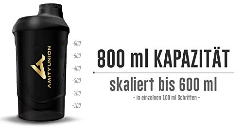 Specification: Protein Shaker – The ORIGINAL van AMITYUNION – proteïne shaker lekvrij – BPA-vrij met zeef, weegschaal voor romige wei…